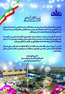 مدیرعامل و نائب رئیس هیأت مدیره شرکت پتروشیمی فن‌آوران به مناسبت عید سعید فطر