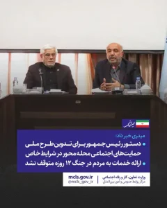 میدری خبر داد: دستور رئیس جمهور برای تدوین طرح ملی حمایتهای اجتماعی محله محور در شرایط خاص/ ارائه خدمات به مردم در جنگ ۱۲ روزه متوقف نشد